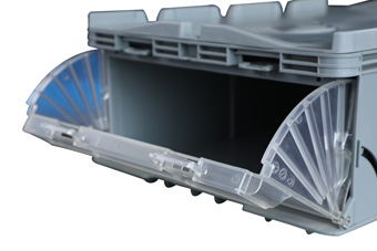 ●展开式取货口-箱体堆垛时可任意取货